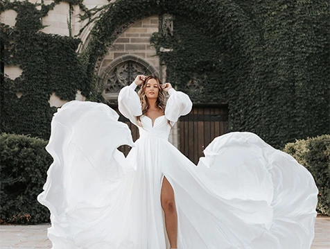 Wedding dresses with sleeves are very much in style for brides. Modern wedding dresses with long crepe sleeves are very of the moment and on-trend. Detachable sleeves and off-the-shoulder sleeves are the perfect way to incorporate this trend into your wedding day.