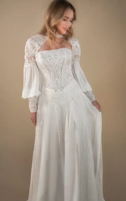 Catering to the fashionable bride with a penchant for vintage charm, Style D3407 strikes the ideal balance between timeless appeal and contemporary flair.